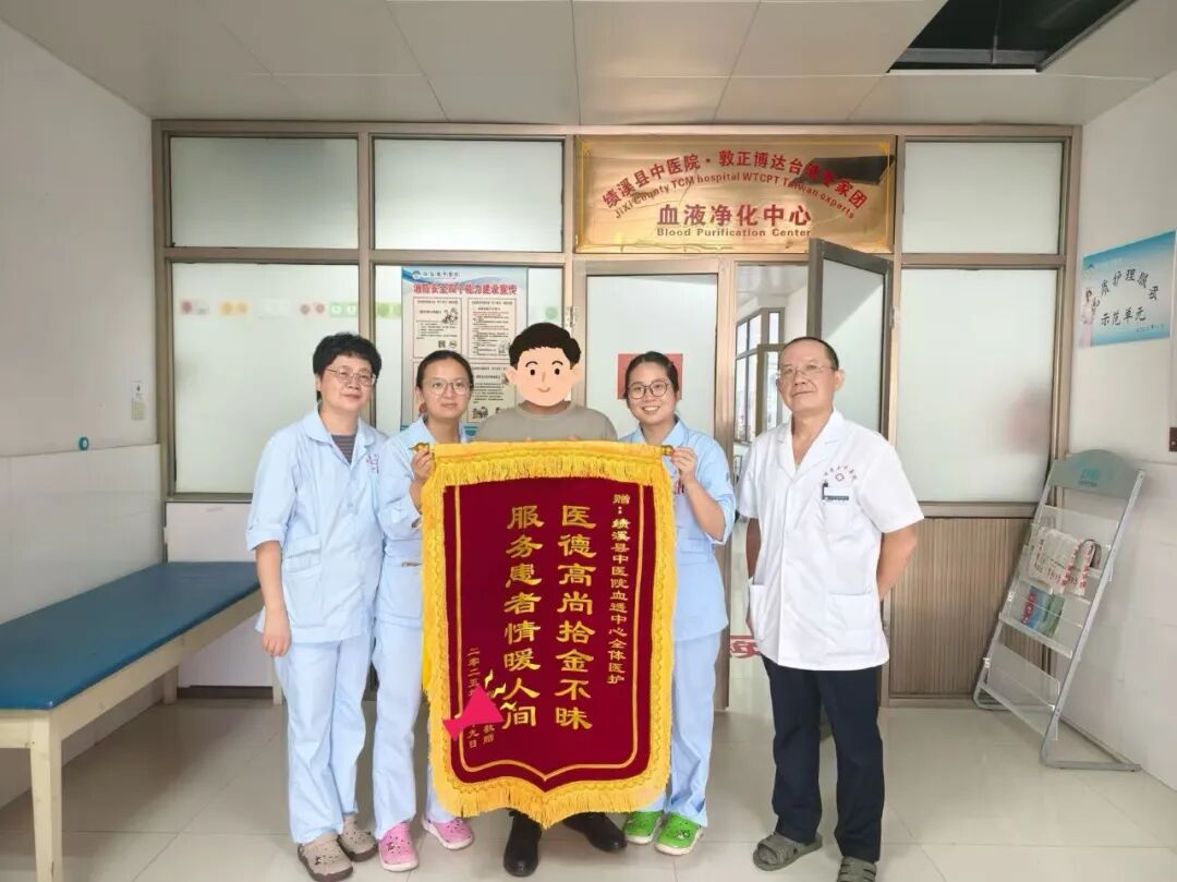 9月25日清晨,绩溪县中医院血透室的医护人员刚到岗,就收到了患者程先生送来的一面锦旗——“医德高尚拾金不昧,服务患者情暖人间”,鲜红的锦旗上,字里行间满是患者的感激。